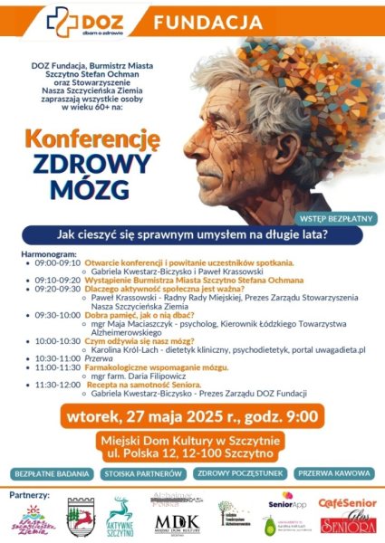 Już 27 maja o godz. 9:00 w Miejskim Domu Kultury w Szczytnie odbędzie się wyjątkowa konferencja „ZDROWY MÓZG”, organizowana z myślą o osobach 60+. W programie – wykłady ekspertów, bezpłatne badania i garść praktycznej wiedzy o tym, jak dbać o sprawność umysłu i jakość życia.