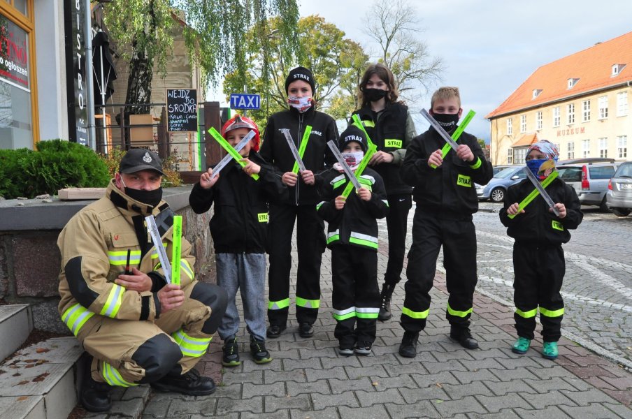 Na ulicach Szczytna pojawiło się około 1000 odblasków. Ich roznoszeniem zajęły się dzieci z młodzieżowej drużyny OSP Szczytno.