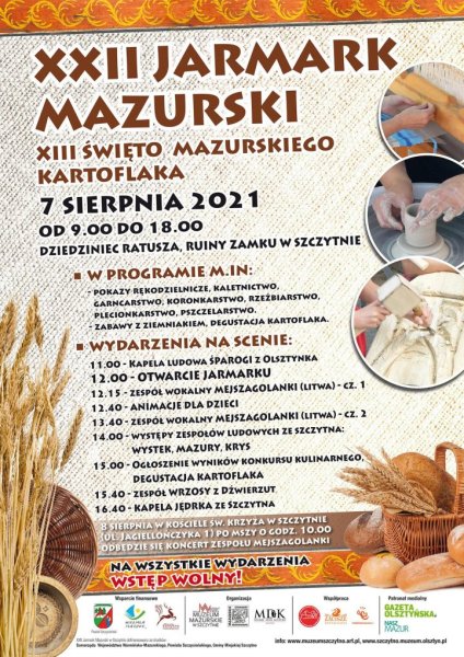 - Święto Mazurskiego Kartoflaka i Jarmark Mazurski na Dziedzińcu Ratusza i Zamku Krzyżackim w godz. 9:00-18:00