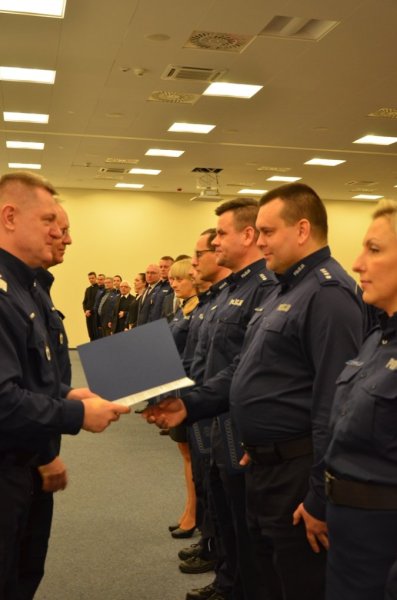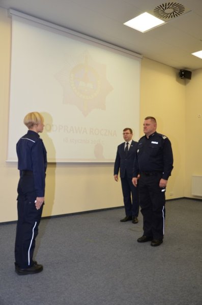 Odprawę roczną rozpoczęło przemówienie Komendanta-Rektora. W słowach wstępu insp. dr Marek Fałdowski przywitał zaproszonych gości oraz pracowników Uczelni. Następnie wspólnie z nadinsp. Janem Lachem – Zastępcą Komendanta Głównego Policji wręczył 12 funkcjonariuszom uczelni awanse na wyższe stanowiska służbowe.
