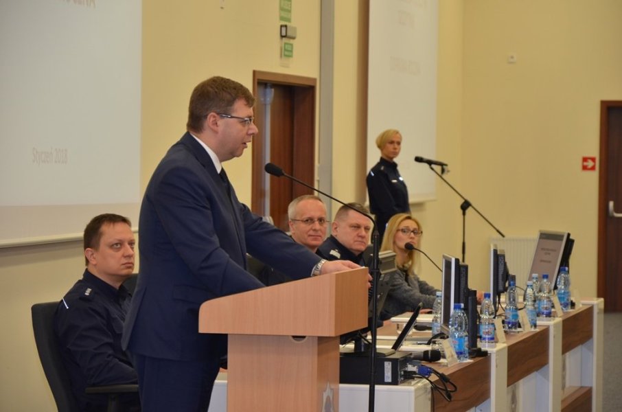 Następnie głos zabrał nadinsp. Jan Lach. Zastępca Komendanta Głównego Policji przedstawił obecnym na odprawie rocznej prezentację, która podzielona była na dwie części. Pierwsza obrazowała system szkolnictwa policyjnego w Polsce, w tym m.in. zmiany w programach szkoleń zawodowych i programach nauczania, jak również planach szkoleniowych na rok 2018.