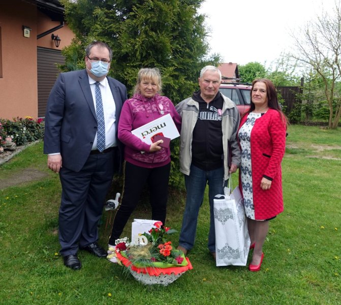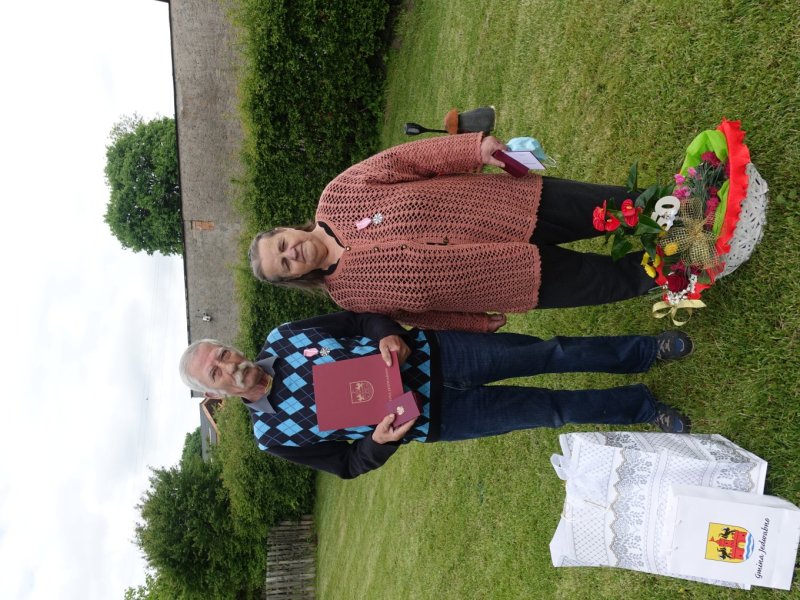 Choć ostrych reżimów już nie ma, w gminie Jedwabno na zimne się dmucha. Z tej przyczyny, zamiast zbiorowego spotkania, wójt Sławomir Ambroziak, wraz z osobami towarzyszącymi, kwiatami, prezentami, a przede wszystkim z medalami za długoletnie pożycie odwiedził jubilatów, którzy w 2020 roku „zaliczyli” 50 wspólnie spędzonych lat.