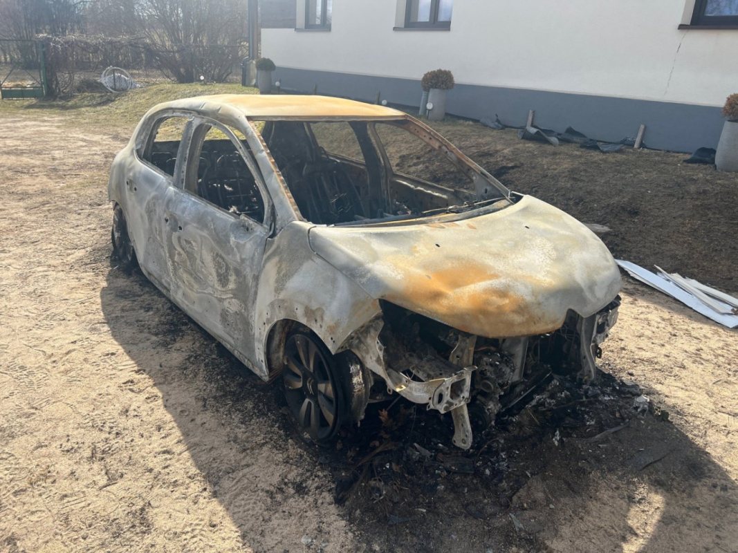 Auto – Citroen C3 – stało na podwórku, kilka metrów od domu. Kiedy domownicy wybiegli na zewnątrz, było już za późno na reakcję.