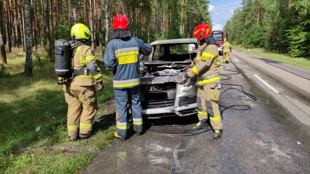 Gdy na miejsce dotarli strażacy samochód cały stał w płomieniach. Ogień udało się ugasić, ale audi spłonęło doszczętnie. Straty wyceniono wstępnie na 50 tys. zł.