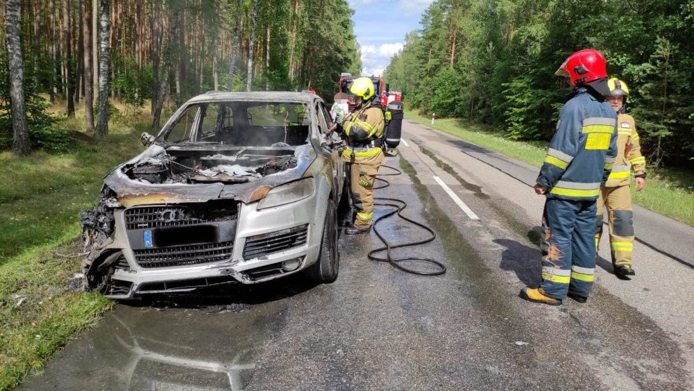 We wtorek, 2 sierpnia w okolicach wsi Kot zapaliło się audi Q7. Kierowca najpierw samodzielnie próbował gasić auto, ale bezskutecznie.