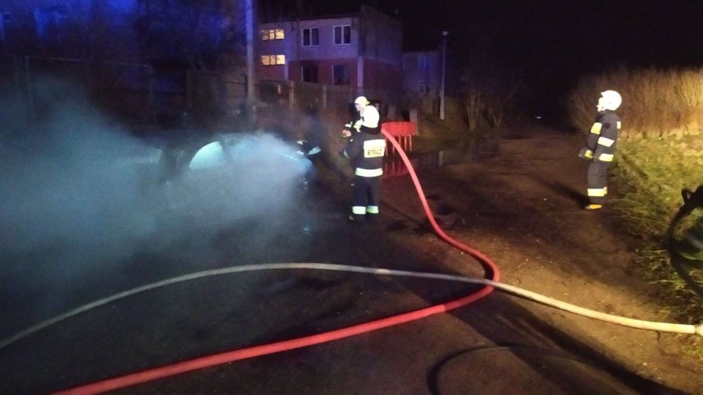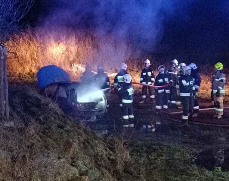 Gdy na miejsce wezwania przyjechali pierwsi ratownicy samochód objęty był już w całości ogniem.