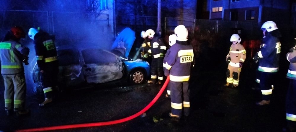 Auto spłonęło niemal całkowicie. Straty oszacowano na 3 tys. zł. Przyczyny powstania pożaru na razie nie udało się ustalić.