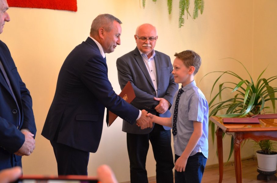 Nagrody wręczyli uczniom Cezary Łachmański, burmistrz Pasymia oraz Andrzej Kozikowski, przewodniczący Rady Miejskiej w Pasymiu i Wiesław Szubka, Sekretarz Miasta Pasym.
