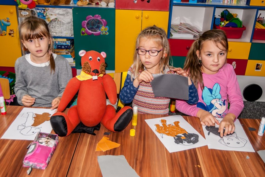 Przebywając w Trelkowie, Gminek uczył się wraz z dziećmi, poznawał techniki czytania oraz liczenia. Z najmłodszymi bawił się i podpowiadał, jak wykonać kulki z ciastoliny. Był również na jesiennym spacerze, podczas którego spotkał się z małym kotkiem.
