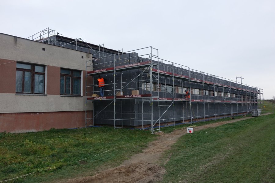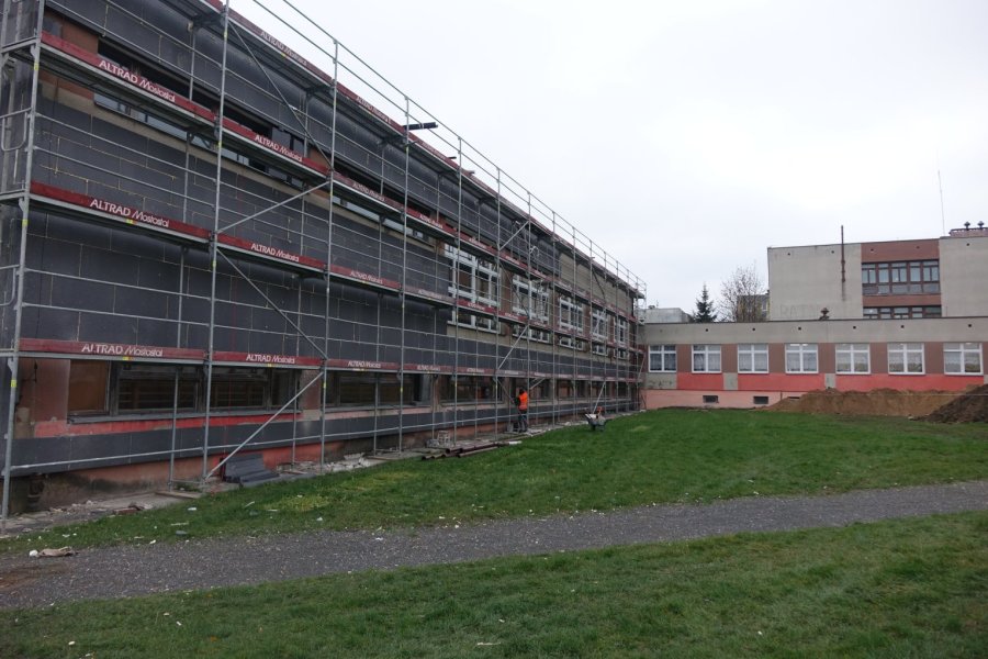Już widać pierwsze efekty prac. Znaczna część obiekty, obstawiona rusztowaniami, uzyskuje zewnętrzne docieplenie. Zakres planowanych robót jest znacznie większy, co ma wpływ na niebagatelną wysokość kosztów inwestycji. Na szczęście, mimo początkowych problemów, miasto „załapało” się na unijną dotację, dzięki czemu z własnego budżetu dopłaci trochę ponad 1,5 mln złotych, podczas gdy całość podjętych działań kosztować będzie blisko 10 mln zł. Jak zapewniają władze miasta i dyrekcja szkoły, prowadzone prace budowlane nie utrudniają normalnego funkcjonowania placówki. Przynajmniej w tym początkowym okresie, bo sporo dalszych działań modernizacyjnych odbywać się będzie już w środku, np. wykonanie systemu wentylacji czy wymiana okien.