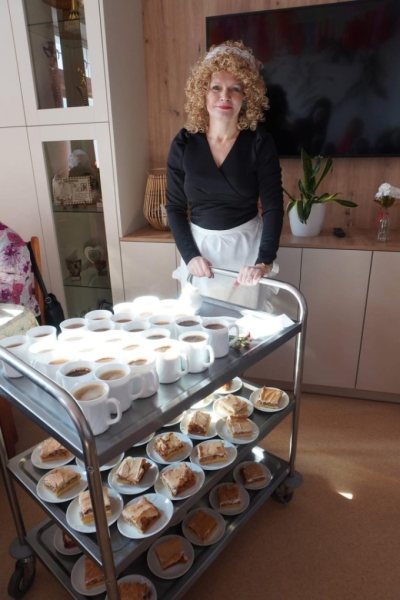 Na początku panowie zaprezentowali krótki występ dla licznie zgromadzonych pań. Każda z nich otrzymała kwiat i drobny upominek, a unikalna sceneria rodem z PRL-u nadała spotkaniu niepowtarzalny charakter. Na stołach pojawiły się szarlotka i chrupiący chleb ze smalcem, które wzbudziły w uczestnikach nutkę nostalgii.