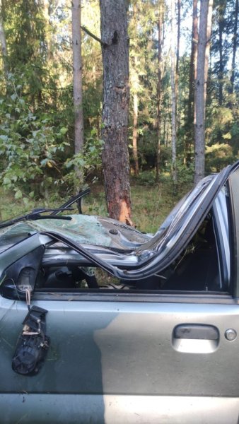 - Bez wątpienia mieli mnóstwo szczęścia – komentuje druh Krzysztof Nikadon z OSP Jedwabno. - wypadek wyglądał bardzo groźnie. Drzewo dotykało krawędzi drzwi.