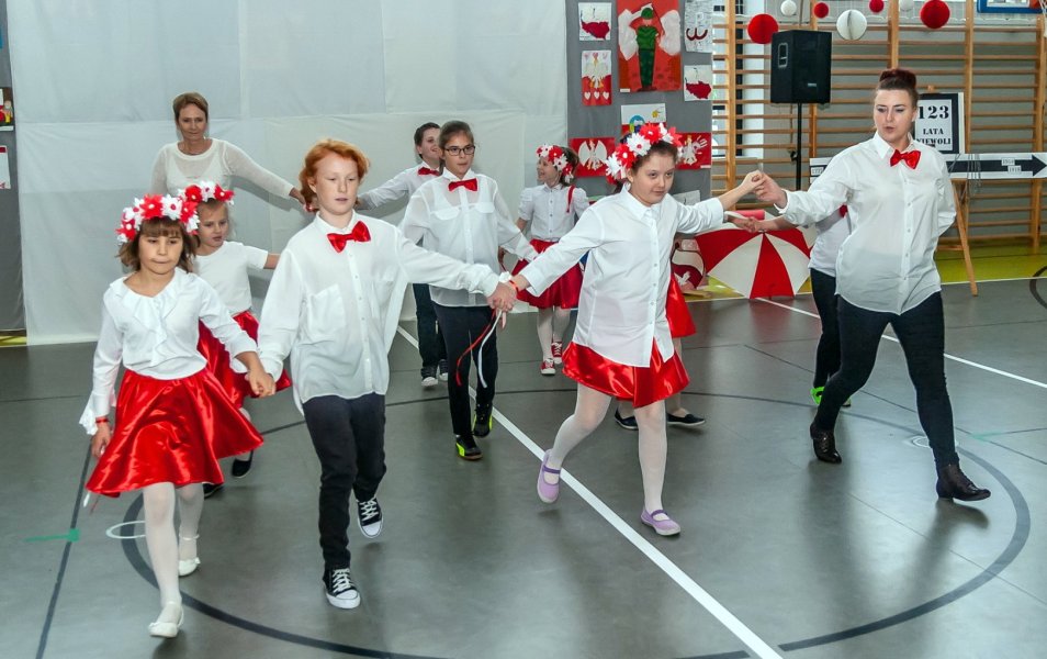 Nie zabrakło również i wspólnego śpiewania patriotycznych utworów, natomiast na zakończenie uroczystości, uczniowie najmłodszych klas wraz ze swoimi wychowawczyniami wspólnie zatańczyli poloneza.