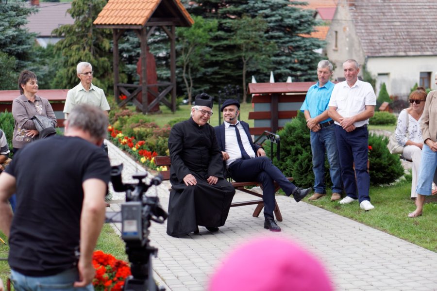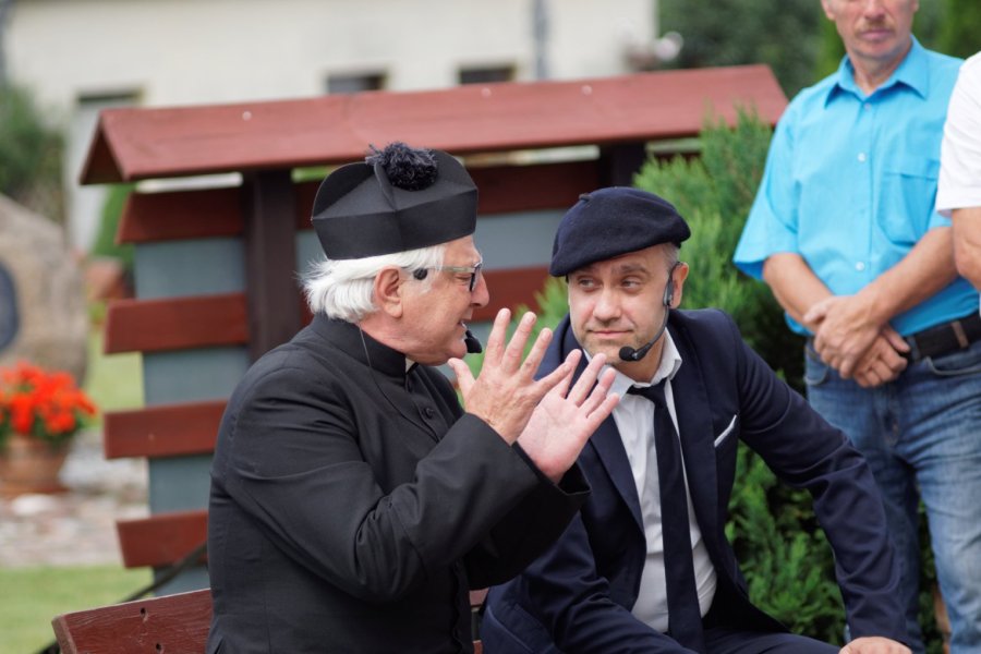 Aktorzy z Teatru Jaracza w Olsztynie: Marian Czarkowski jako Ks. Jakub Brzeszczyński, Marcin Kiszluk – Melchior Wańkowicz
