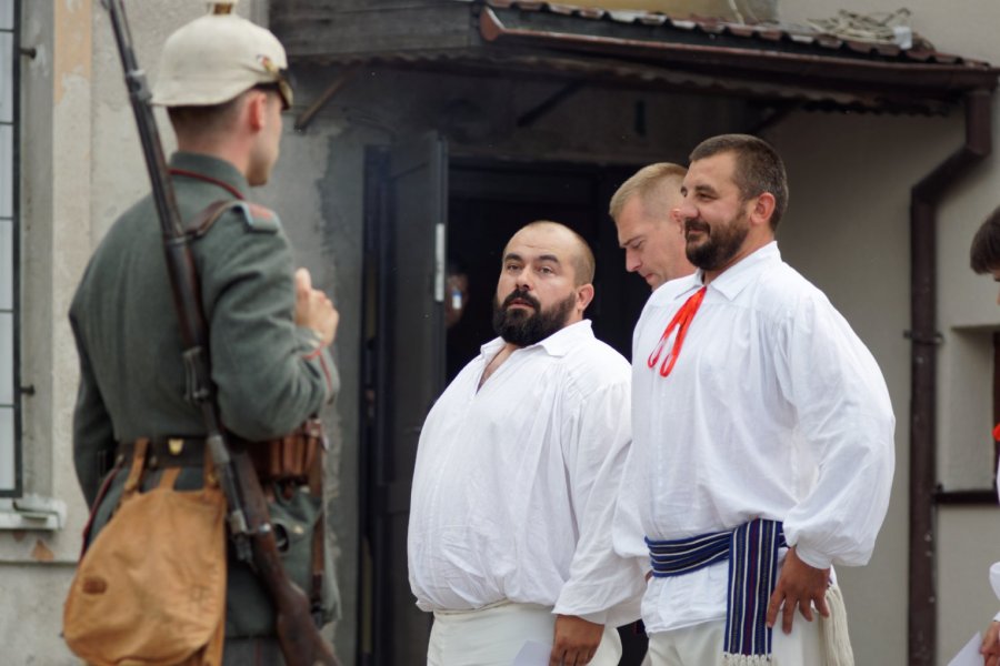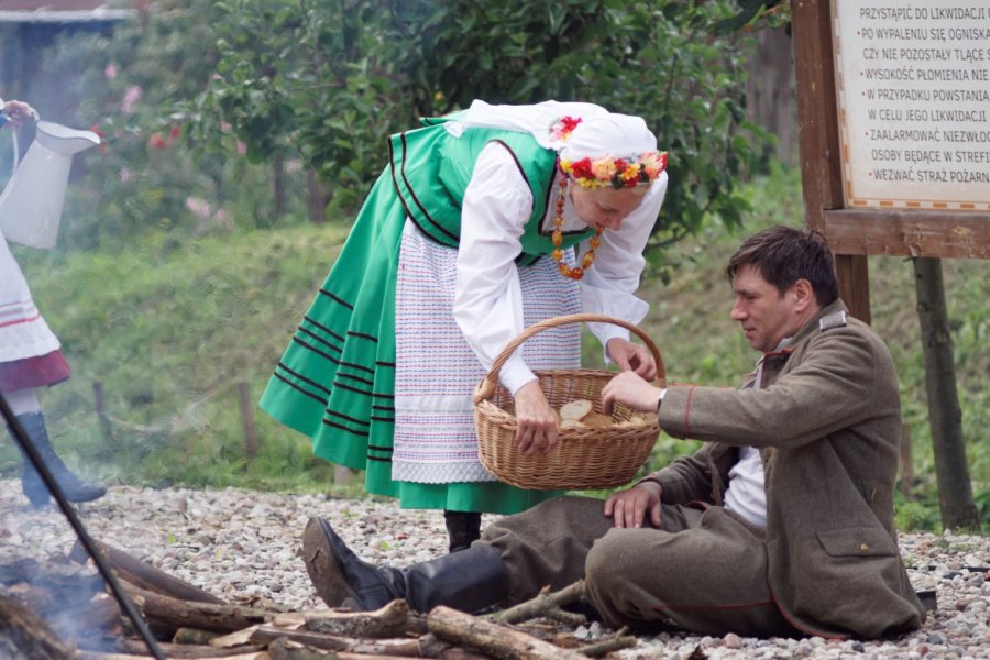 Druga część spektaklu odbyła się na placu za Gminnym Ośrodkiem Kultury w Jedwabnie, a trzecia scena miała miejsce w Parku w Jedwabnie. Tutaj aktorską grą pochwalili się członkowie Zespołu Pieśni i Tańca „Jedwabno” oraz grupy rekonstrukcyjne, którzy wspólnie przygotowali wspaniałe widowisko, a narrator przedstawiał koleje losu miejscowości Jedwabno.