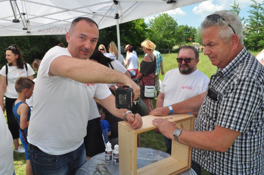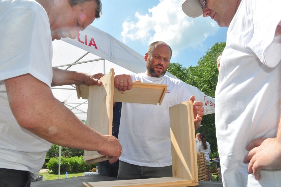 Na Małej Bieli pracownicy Veoli z prezesem Markiem Kaszkowiakiem na czele, samorządowcy z burmistrzem Krzysztofem Mańkowskim oraz wolontariusze ze szczycieńskich stowarzyszeń „Uczeń”, „Promyk” i „Uniwersytet Trzeciego Wieku” własnoręcznie zbudowali pięć uli. Od podstaw. Instrukcji udzielił im Jakub Wilk, zawodowy pszczelarz. Akcja ma zwrócić uwagę na to, jak ważne jest dbanie o środowisko.