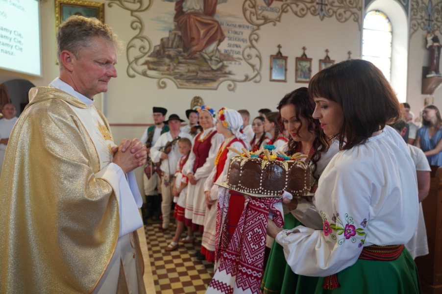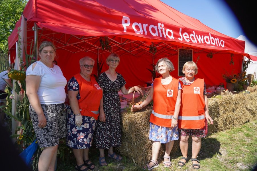 15.08.2023 r. w Jedwabnie odbyły się Dożynki Gminno – Parafialne. Tradycyjnie uroczystość tę rozpoczęła Msza Święta Dziękczynna w kościele Św. Józefa Oblubieńca Najświętszej Maryi Panny w Jedwabnie. Następnie barwny korowód przemaszerował do miejscowego parku, gdzie odbyła się inscenizacja obrzędu dożynkowego w wykonaniu Zespołu Pieśni i Tańca Jedwabno. Oficjalnego otwarcia dokonał Wójt Gminy Jedwabno – Sławomir Ambroziak przyjmując z rąk Starostów Dożynek – Państwa Haliny i Czesława Jędrzejczyk chleb – owoc ziemi i pracy ludzkich rąk.