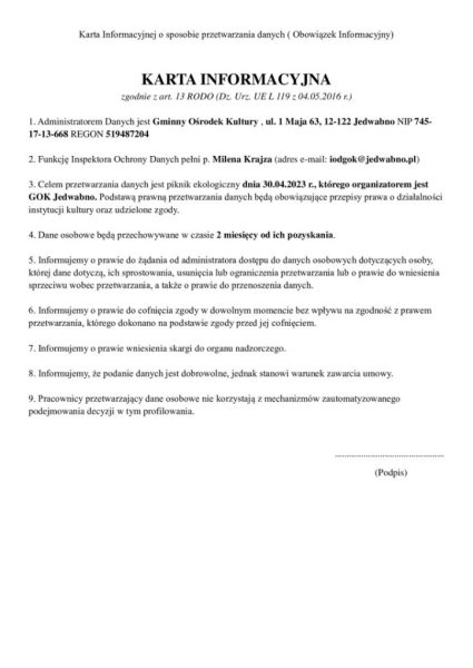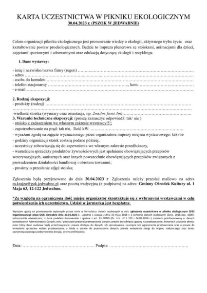 Regulamin i karta zgłoszeniowa oraz szczegóły dotyczące tego wydarzenia dostępne są na stronie internetowej GOK Jedwabno oraz telefonicznie 89 621 30 42.