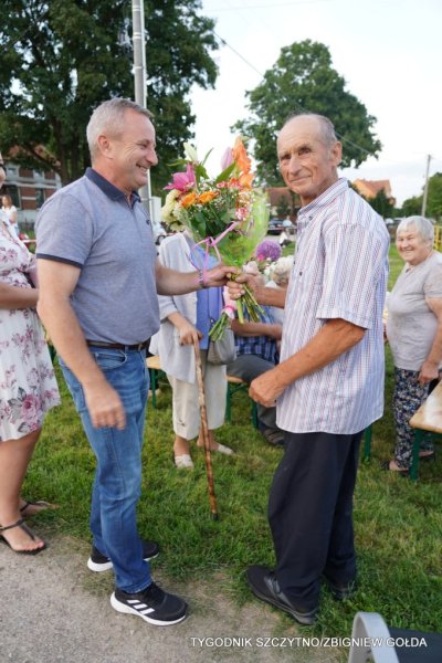 Podczas ostatniego pikniku piekne bukiety otrzymało sześć osób. Te, którym zdrowie pozwoliło uczestniczyć w wiejskim imprezowaniu, zostały obdarowane publicznie, na zabawowym placu, inne – burmistrz odwiedził w ich domach. Jak mówi nieznacznie, bo nieznacznie, ale liczba tych zasłuzonych dla Narajt seniorów corocznie się powiększa.