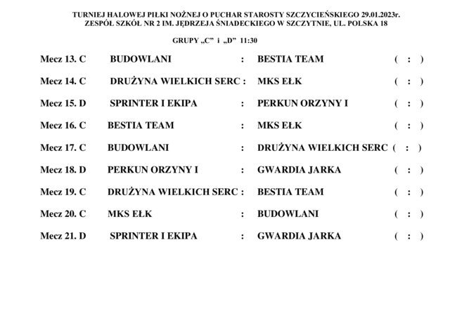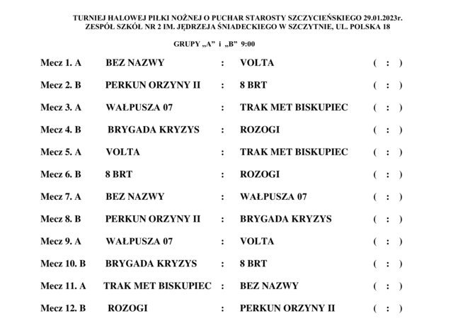 W niedzielę, 29 stycznia w hali sportowej Zespołu Szkół nr 2 w Szczytnie odbędzie się Turniej Halowej Piłki Nożnej o Puchar Starosty Szczycieńskiego. Rywalizować będzie 15 drużyn. Początek zmagań godz. 9.