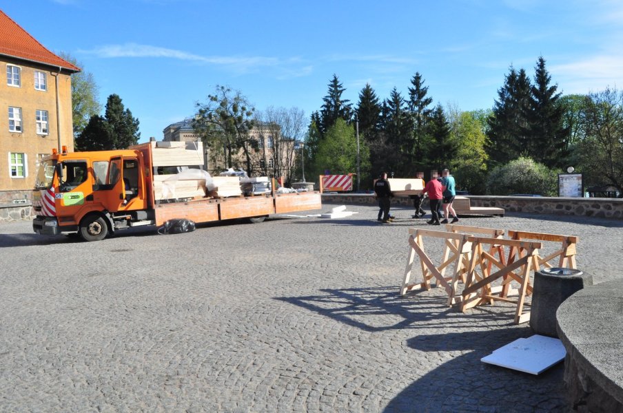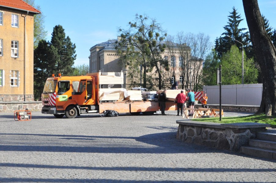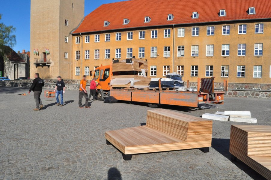 Ruszyła zmiana zagospodarowania cześć Placu Juranda. Właśnie zaczęto zwozić i montować pierwsze elementy „nowego wystroju”.