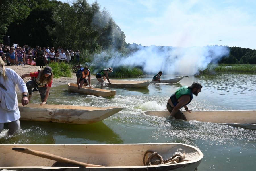 Zwieńczeniem warsztatów były sobotnie (13 sierpnia) regaty wykonanych dłubanek na Jeziorze Spychowskim. Pod czujnym okiem jury i w emocjonującym slalomie łodzi pomiędzy bojkami, pierwsza na linię mety dotarła dłubanka Koła Młodych SITLiD SGGW. Sędziowie ocenili również najładniej wykonaną dłubankę - dzieło śląskiej grupy rodzinnej. Z kolei w kategorii poruszania się dłubanką na wodzie, najlepsza okazała się drużyna Jaćwingów z Wigier. Po regatach można było skosztować produktów „Dobre z lasu”, czyli dziczyzny i innych naturalnych darów lasu przygotowanych przez spychowskich leśników.