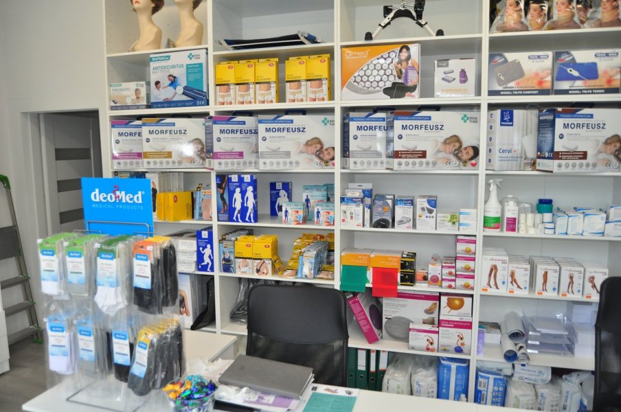Sklep pani Pauliny znajduje się przy ulicy Skłodowskiej–Curie 15, na parterze budynku Cechu Rzemiosł. To zaledwie 200 metrów od szpitala. Lokalizacja jest istotnym elementem, bo dzięki niej pacjenci, czy ich rodziny mają zaledwie kilka kroków, aby zaopatrzyć się w potrzebne materiały medyczne, rehabilitacyjne czy pielęgnacyjne. A tak doposażonego sklepu próżno szukać gdzie indziej w regionie.