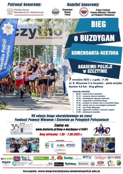 7 września Szczytno znów stanie się sportową stolicą Warmii i Mazur. Na Plaży Miejskiej wystartuje VII edycja Biegu o Buzdygan Komendanta-Rektora Akademii Policji – charytatywnej imprezy, z której dochód wesprze Fundację Pomocy Wdowom i Sierotom po Poległych Policjantach.