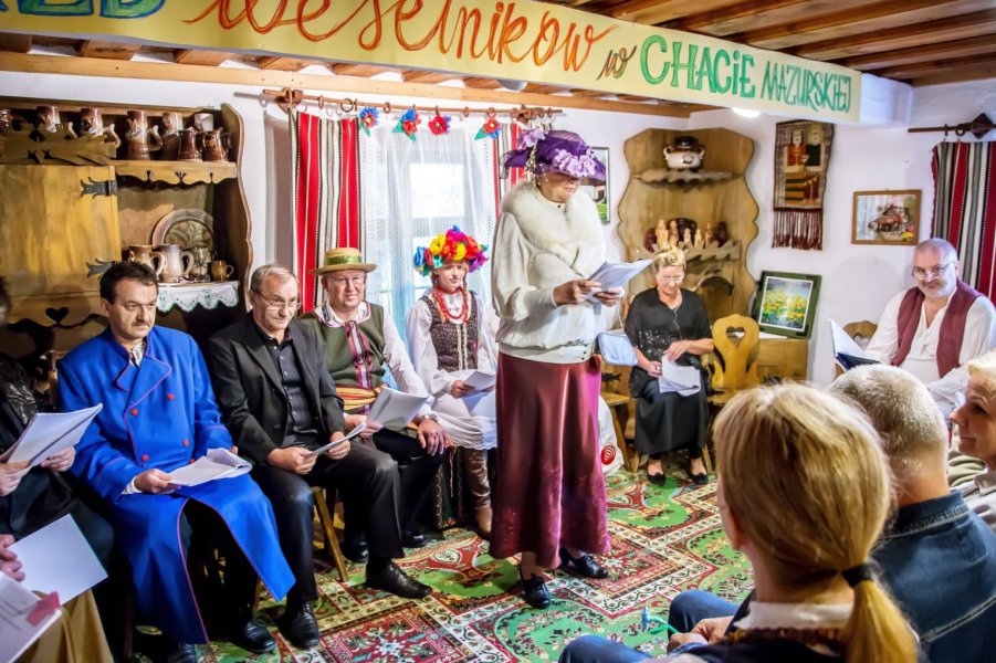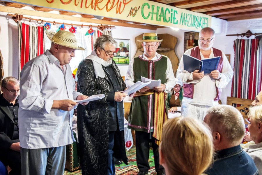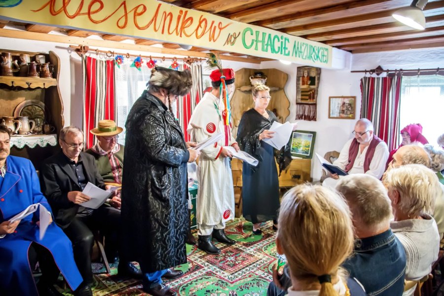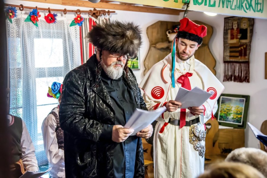 W tym roku wybór padł na dramat Stanisława Wyspiańskiego „Wesele”. Największa izba Chaty Mazurskiej zamieniła się w teatralną scenę, a mieszkańcy naszego miasta stali się widzami barwnej inscenizacji dramatu, bo taką formę Narodowego Czytania postanowiono przyjąć. To była prawdziwa poetycka uczta w sobotnie popołudnie.