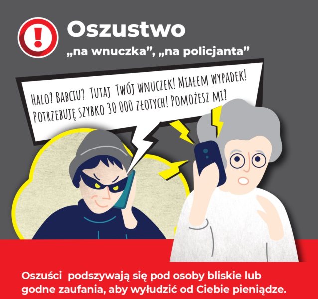 Policjanci przestrzegają przed oszustami wyłudzającymi od starszych osób pieniądze metodą na tzw. wnuczka. Sprawcy tego typu oszustw są często zatrzymywani dzięki pomocy osób, które mają świadomość tego, że mogą zostać oszukane. Niestety wciąż do policjantów docierają informacje o kolejnych pokrzywdzonych. Kiedy starsza osoba odbiera telefon od rzekomego „wnuczka” z prośbą o pomoc, często przekazuje przestępcom oszczędności całego życia.