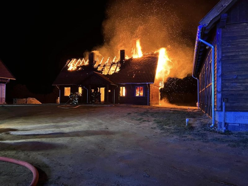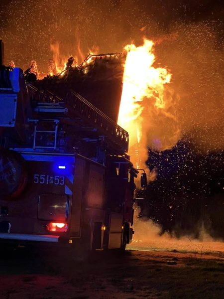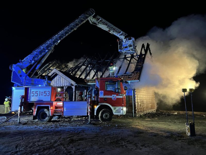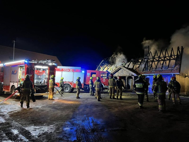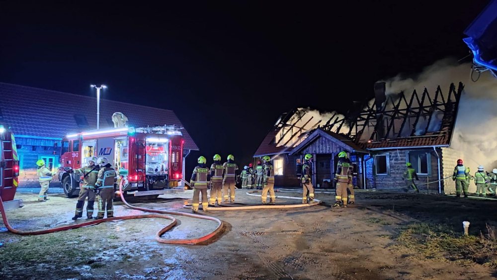 - Zgłoszenie trafiło do nas o 22:11 – mówi kapitan Łukasz Wróblewski z KP PSP w Szczytnie. - Pierwsze jednostki były na miejscu o 22:23. Budynek o wymiarach 10 na 15 na 5 metrów był cały w ogniu. Pożar był w pełni rozwinięty. Ogień wychodził przez dach i okna – dodaje.