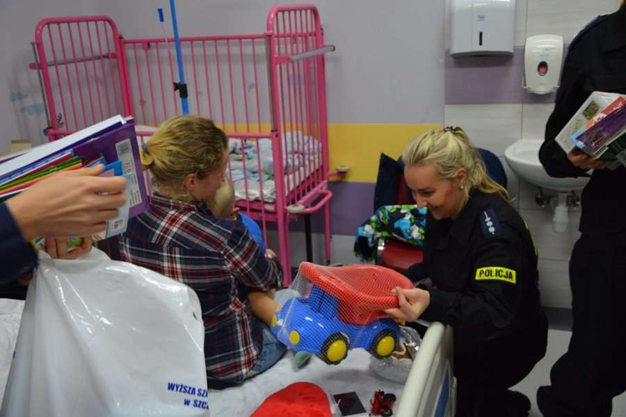 W czwartek policjanci kształcący się w Wyższej Szkole Policji w Szczytnie odwiedzili Oddział Dziecięcy Szpitala Powiatowego w Szczytnie oraz Wojewódzki Szpital Rehabilitacyjny dla dzieci w Ameryce.