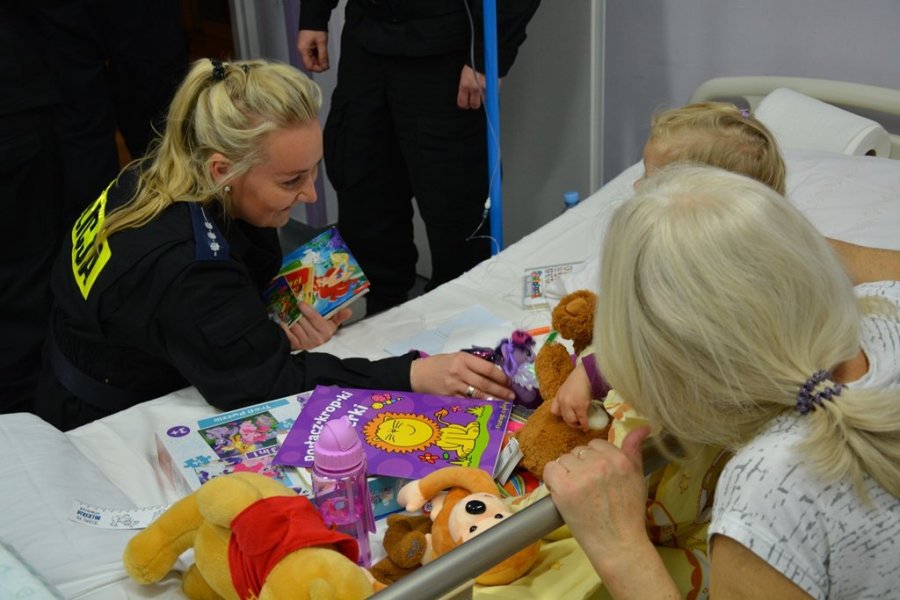- O akcji dowiedzieliśmy się z plakatu. Bardzo szybko zorganizowaliśmy wśród kolegów zbiórkę zabawek. Większość z nas ma dzieci. Wiemy ile radości sprawiają im drobne upominki. Poprzez tę akcję chcieliśmy dodać otuchy najmłodszym przebywającym w szpitalach. Pluszowe maskotki nadają się do tego idealnie. To one towarzyszą nam od najmłodszych lat. Są przy nas w chwilach radości, ale również wtedy, gdy się boimy. Mamy nadzieję, że będą również wspierać małych pacjentów w walce o zdrowie – powiedział jeden z funkcjonariuszy uczestniczących w akcji.