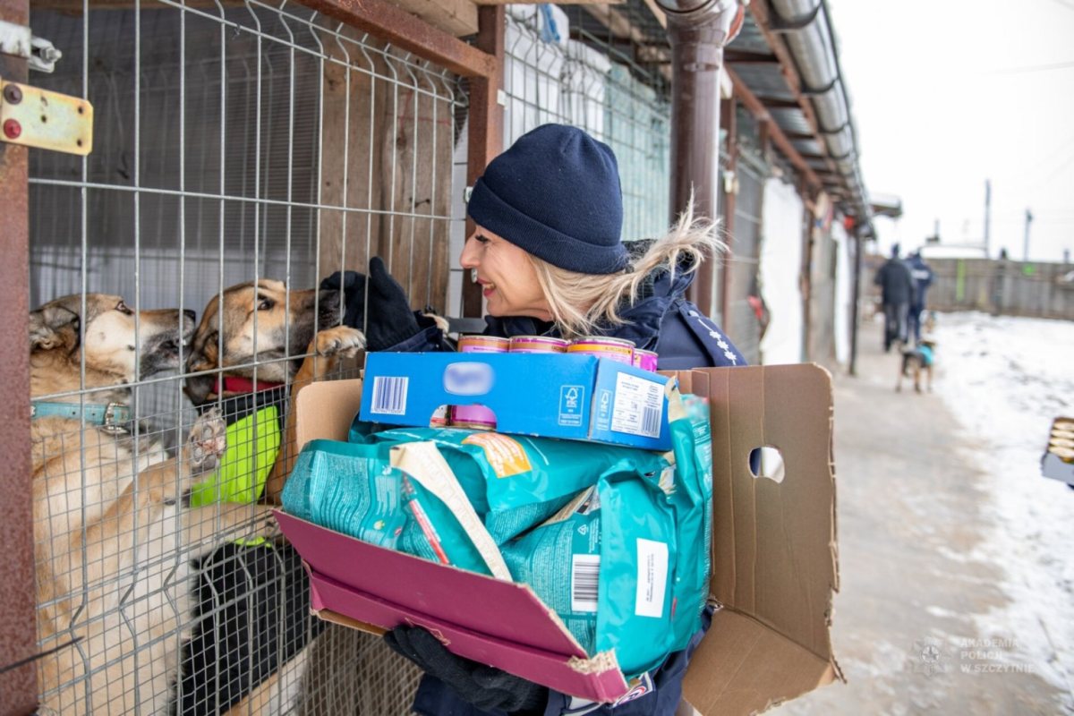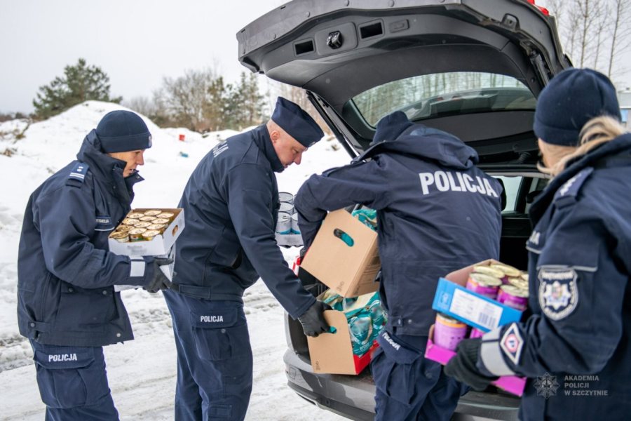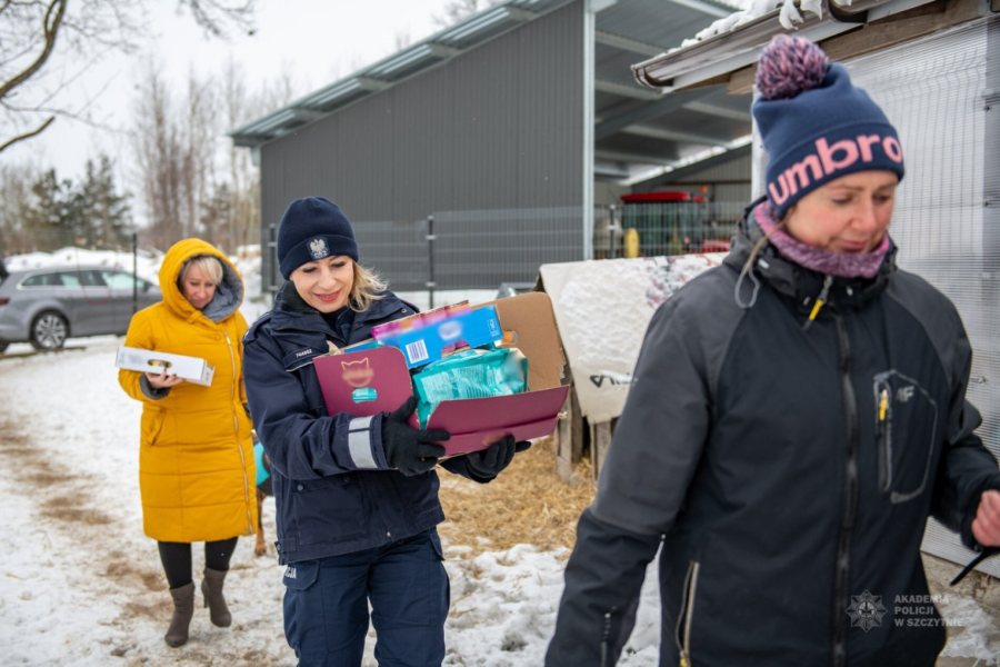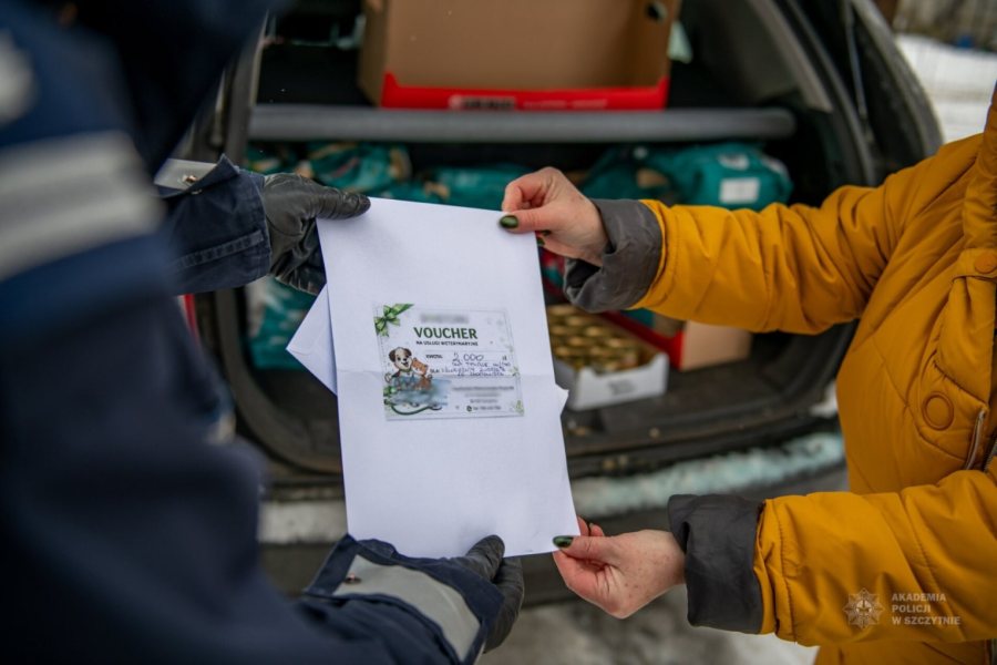 Studenci i kadra Akademii Policji w Szczytnie zebrali pieniądze dla zwierząt z przytuliska w Dźwierzutach. Kupili karmę, smycze i przekazali voucher weterynaryjny o wartości 2000 zł dla kotów ze złomowiska, które wymagają leczenia. Pomoc trafiła na miejsce we wtorek, 17 lutego.
