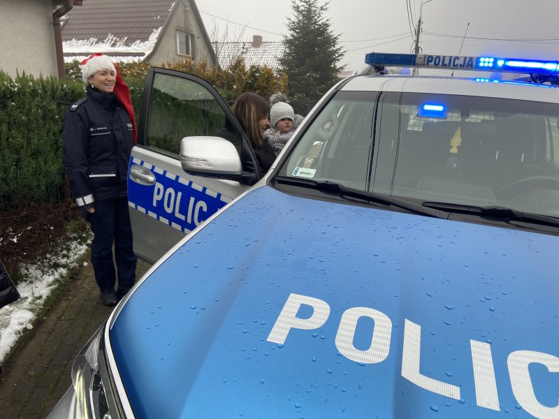 Komendant Powiatowy Policji w Szczytnie insp. Radosław Drach wręczył Gabrysi upominek, dziewczynka zobaczyła z bliska policyjny radiowóz, specjalnie dla niej mundurowi włączyli sygnały świetlne oraz dźwiękowe.