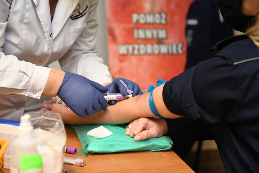 W poniedziałek na terenie WSPol funkcjonariusze oraz słuchacze i studenci policyjnej uczelni oddali próbki krwi do wstępnych badań i kwalifikacji do pobrania osocza, które wykorzystywane jest przy leczeniu pacjentów z koronawirusem. Łącznie było to 29 ozdrowieńców. Próbki do badań w kierunku przeciwciał pobierał zespół z Regionalnego Centrum Krwiodawstwa i Krwiolecznictwa w Olsztynie.