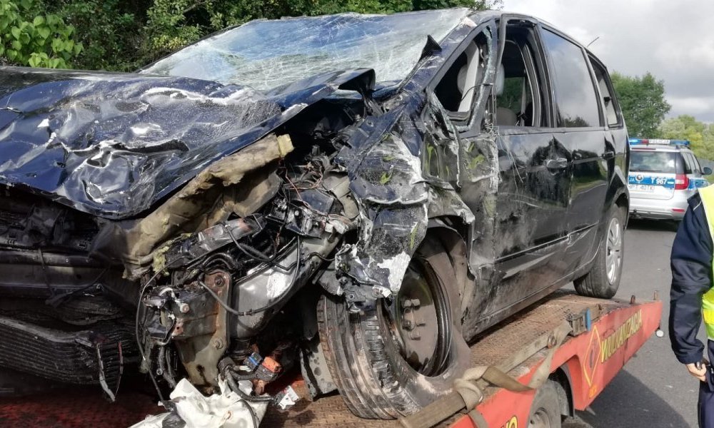 Siła uderzenia była tak wielka, że opel dosłownie rozpadł się na dwie części.