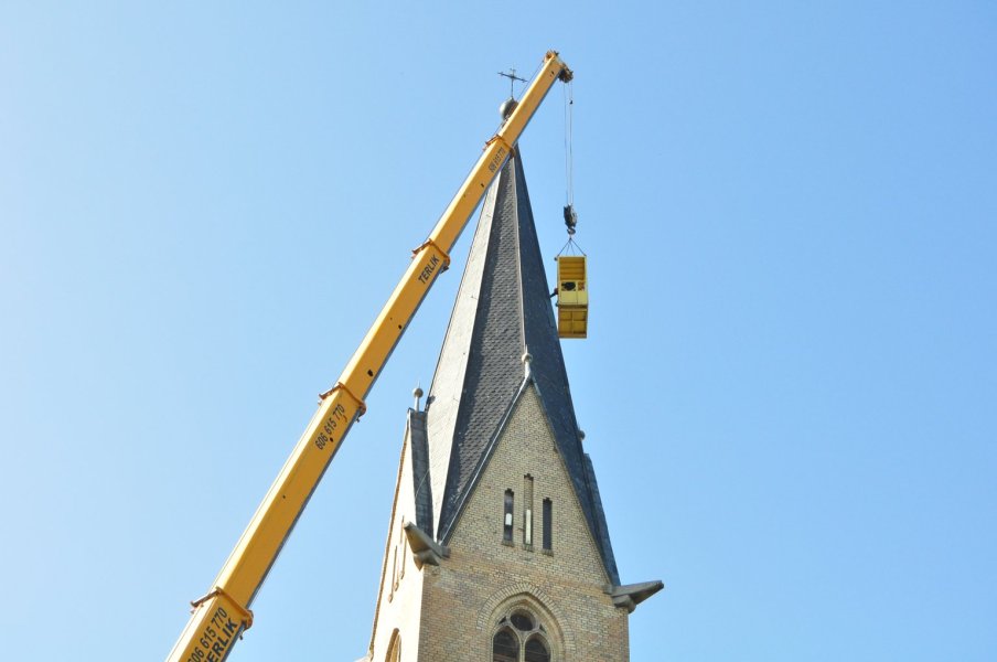 Przy kościele w Rozogach stanął potężny dźwig. - Musieliśmy poprawić dach na wieży kościoła – mówi ksiądz prałat Józef Midura, proboszcz parafii Świętej Marii Magdaleny. - Niestety, są ubytki, które trzeba było koniecznie uzupełnić. To takie doraźne prace poprawiające bezpieczeństwo świątyni i naszych parafian.