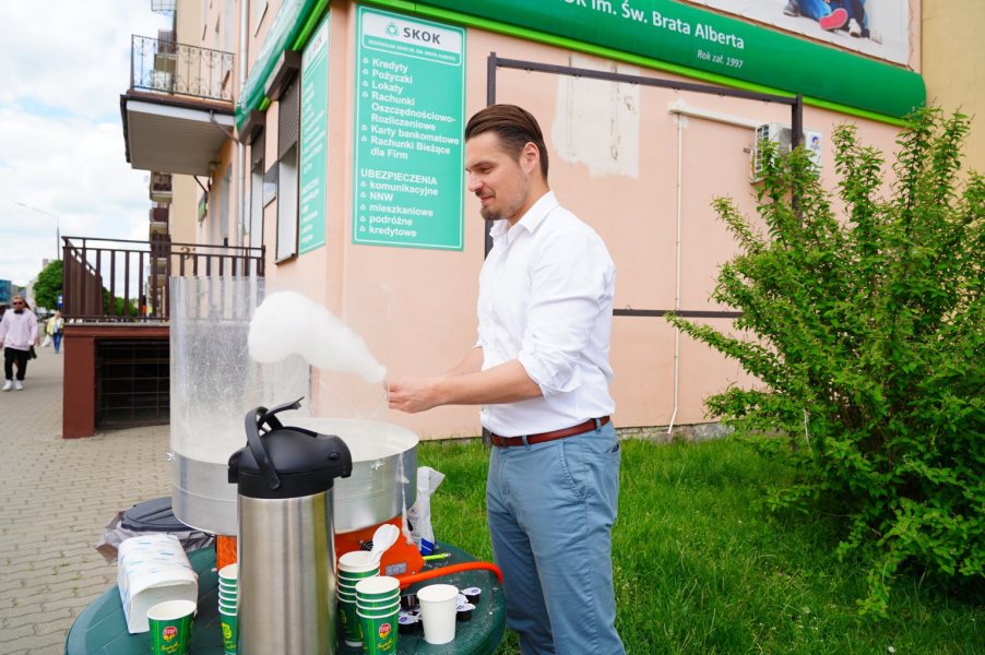 - Chcieliśmy wykorzystać piękną pogodę i wyszliśmy z biura poselskiego, aby spotkać się z mieszkańcami – mówi poseł Michał Wypij. - Rozdając watę cukrową chcieliśmy uczcić Dzień Dziecka. Było coś słodkiego dla podniebienia, a przy okazji był to dobry pretekst do rozmów z mieszkańcami. Dominował temat wszechobecnej drożyzny – dodaje poseł. - Widać że w tej chwili jest to obawa numer jeden mieszkańców. Będzie to poważne wyzwanie dla rządzących, nie mogą tego zlekceważyć, bo ludzie naprawdę boją się o swój los.