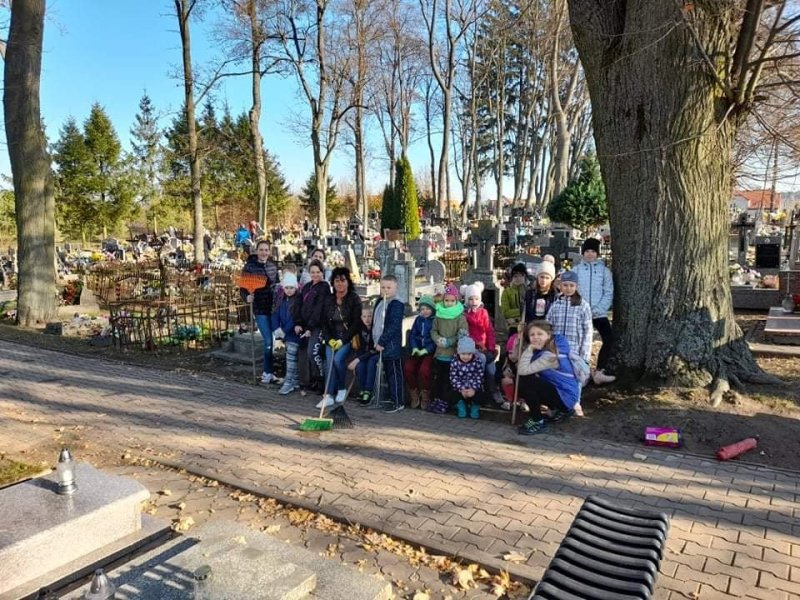 W sobotę, 30 października grupa dzieci uczęszczających na zajęcia do GOK i ich rodziców, razem z opiekunem Anną Weichhaus, posprzątała opuszczone groby na cmentarzu katolickim w Dźwierzutach.