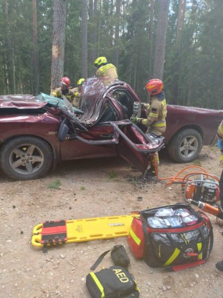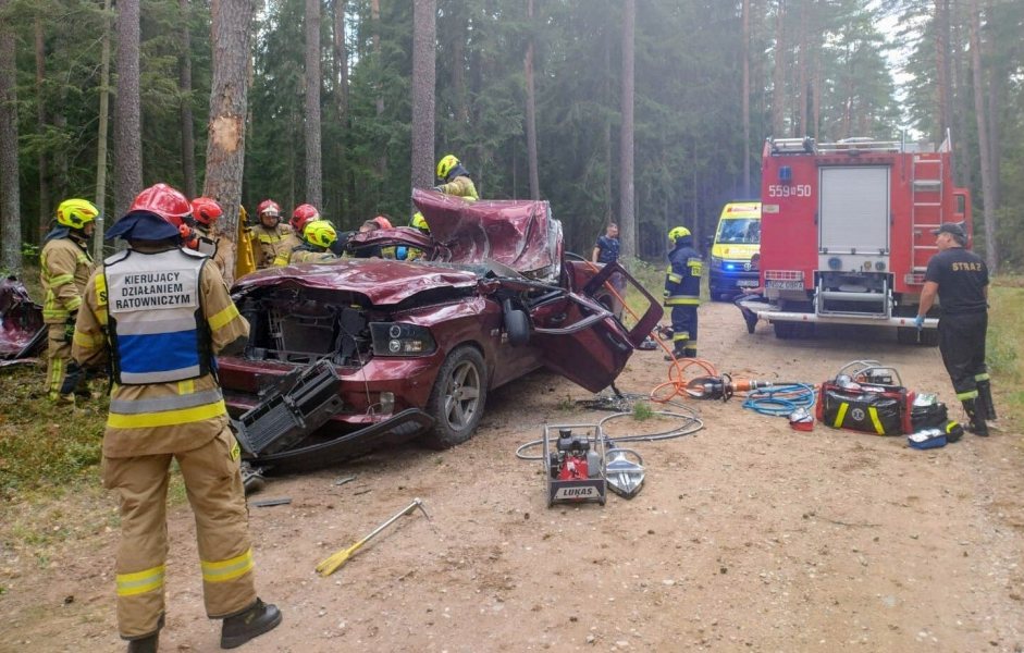 Do poważnego wypadku doszło na trasie Chajdyce - Świętajno. Na drodze leśnej SUV wjechał w drzewo. Ranne są dwie młode osoby, które w wyniku uderzenia zostały zakleszczone w samochodzie. Trwa akcja służb.
