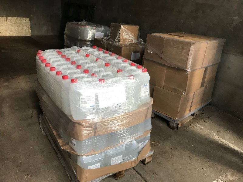 Kilka palet, a dokładnie: 517 litrów płynów do dezynfekcji rąk oraz 990 litrów płynów do dezynfekcji powierzchni przybyło w środę do Starostwa Powiatowego. Zostaną rozdzielone pomiędzy placówki opieki społecznej na terenie powiatu.