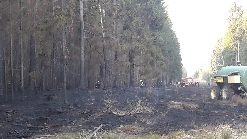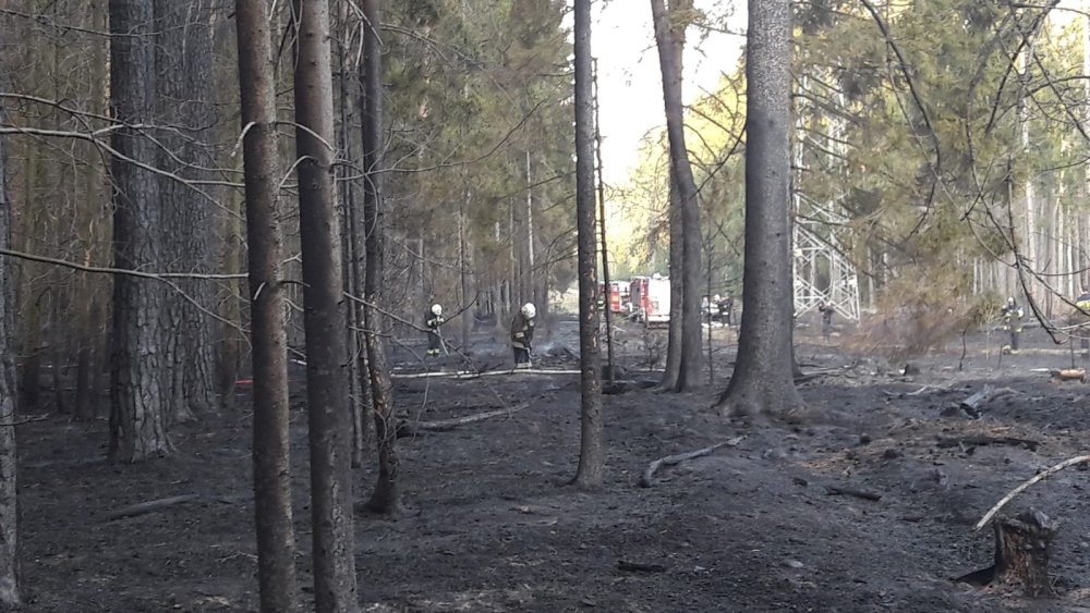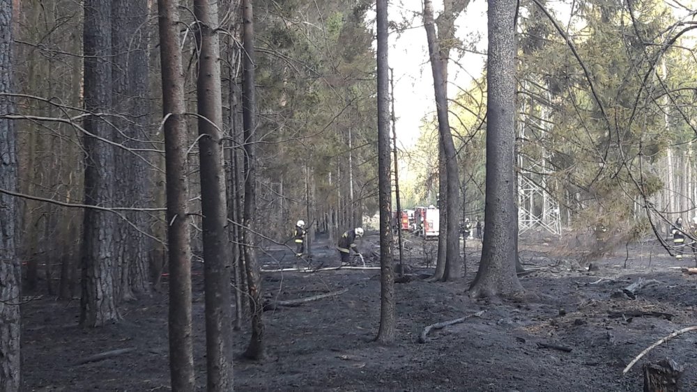 - Prawdopodobnie w wyniku silnych wiatrów przewracające się drzewo zniszczyło izolacje linii energetycznej i doszło do zwarcia, które zaprószyło ogień - mówi Lukasz Wróblewski, oficer prasowy szczycieńskich strażaków. - Taka jest prawdopodobna przyczyna powstania ognia. Był to tak zwany pożar ściółkowy, ogień na szczęście nie poszedł w korony drzew.