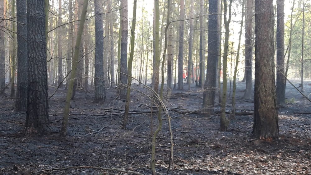 Zakończyła się akcja gaszenia lasu w okolicach Spychowa. Z żywiołem walczyło ponad 100 strażaków, między innymi z naszego powiatu, ale też z sąsiednich - mrągowskiego i piskiego. Spłonęły niemal 4 hektary poszycia. Ogień powstał najprawdopodobniej wskutek zwarcia linii wysokiego napięcia, na którą przewróciło się drzewo.