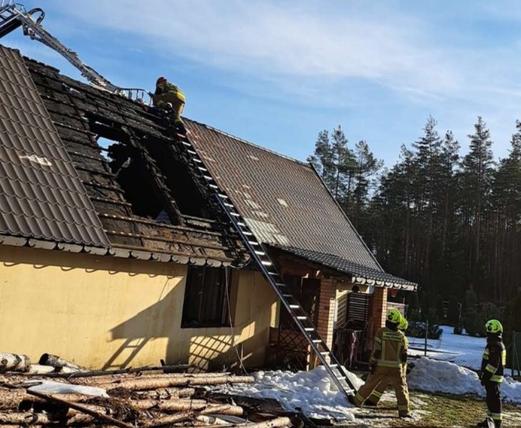 Ponad 20 strażaków walczyło z pożarem domu w Olszynach. Ogień strawił niemal doszczętnie poddasze budynku. Ranna została jedna osoba. Ma poparzoną dłoń. Starsze małżeństwo straciło dach nad głową. Pomoc pogorzelcom obiecały władze gminy Szczytno.