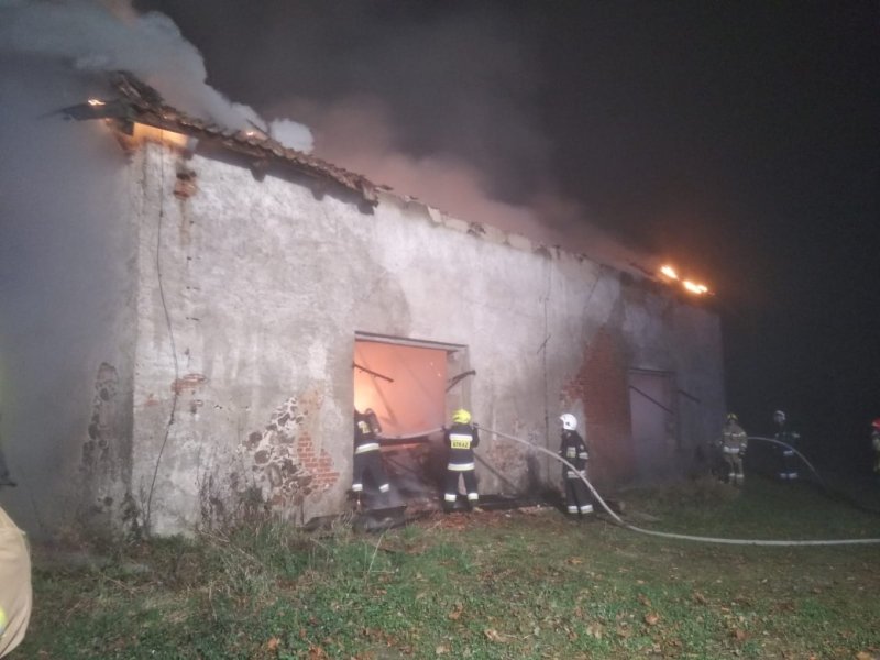 Sytuacja robiła się jednak bardzo niebezpieczna dla strażaków. Zawaliła się ściana szczytowa budynku. Prowadzenie akcji gaśniczej także wewnątrz budynku stało się niemożliwe. Pożar udało się stłumić dopiero około godziny 22. Straty są ogromne. Doszczętnie spłonął jeden z budynków, drugi została solidnie nadpalony, zniszczeniu uległo też 90 balotów słomy. Straty wyceniono na blisko 100 tys. zł.