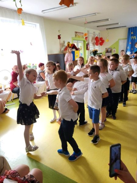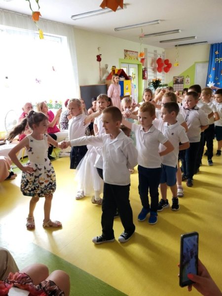 Był i polonez, i niegrzeczna polka, moc wzruszeń, a także miniwystęp dla Pań, przygotowany przez rodziców i dzieci w ogromnej tajemnicy.. - Przy pokonywaniu stromych schodów nauki stąpajcie po najlepszych stopniach! Powodzenia Kochani – życzą swoim absolwentom nauczyciele wychowania przedszkolnego z Bajki.
