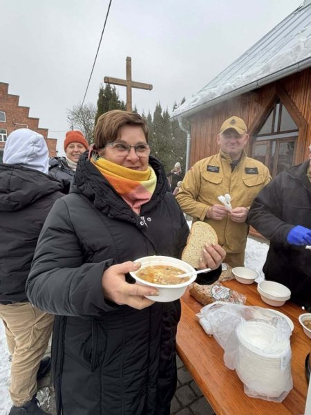 Dzień później, 30 listopada, kolejną niespodziankę przygotowali strażacy z Faryn. Po Mszy świętej wręczyli proboszczowi prezent i życzenia. Dla uczestników nabożeństwa ugotowali grochówkę i częstowali wszystkich po zakończeniu liturgii.