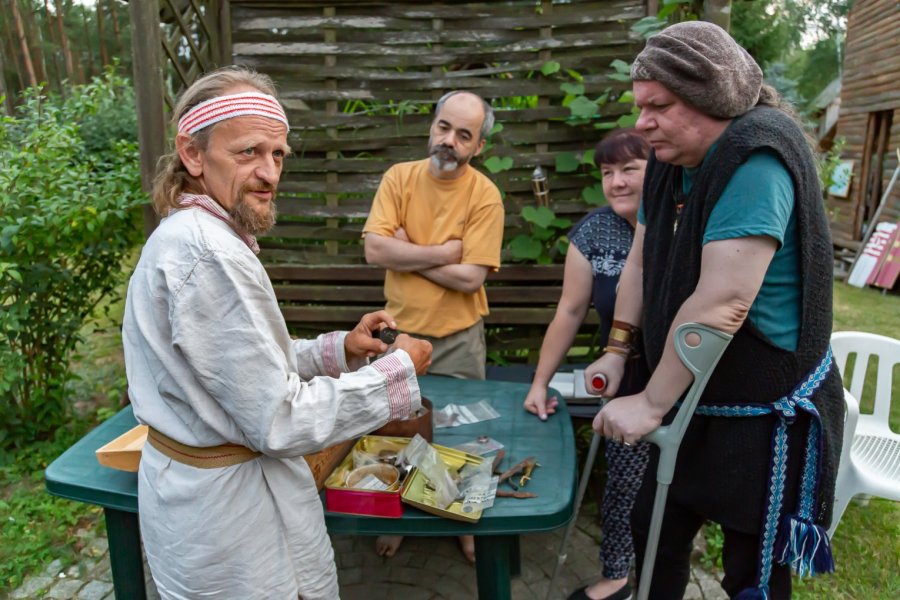 - Po tej części oficjalnej odbywały się zabawy i biesiady, czyli na przestrzeni nie tylko setek, ale i tysięcy lat, niewiele się zmieniło – dodaje ze śmiechem pan Kazimierz. - Punktem kulminacyjnym każdego takiego wydarzenia był toast ku czci bóstw, wznoszony pucharem miodu, bo tylko taki mocniejszy trunek dawni Prusowie znali.