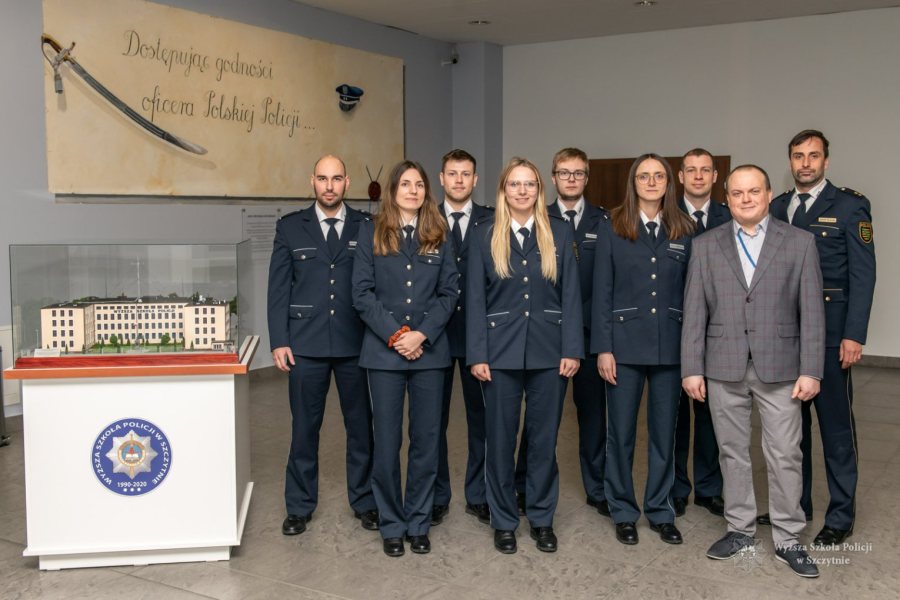 Wyższa Szkoła Policji w Szczytnie gościła przedstawicieli i studentów Wyższej Szkoły Policji Saksońskiej w Rothenburgu (Niemcy). Wizyta odbywała się w ramach programu Erasmus+. Celem wizyty było m.in. zapoznanie z bazą naukowo-dydaktyczną szczycieńskiej uczleni, przebiegiem i zakresem kształcenia oficerów Policji oraz zapoznanie z obszarem zwalczania przestępczości internetowej i cyfrowej w Polsce.